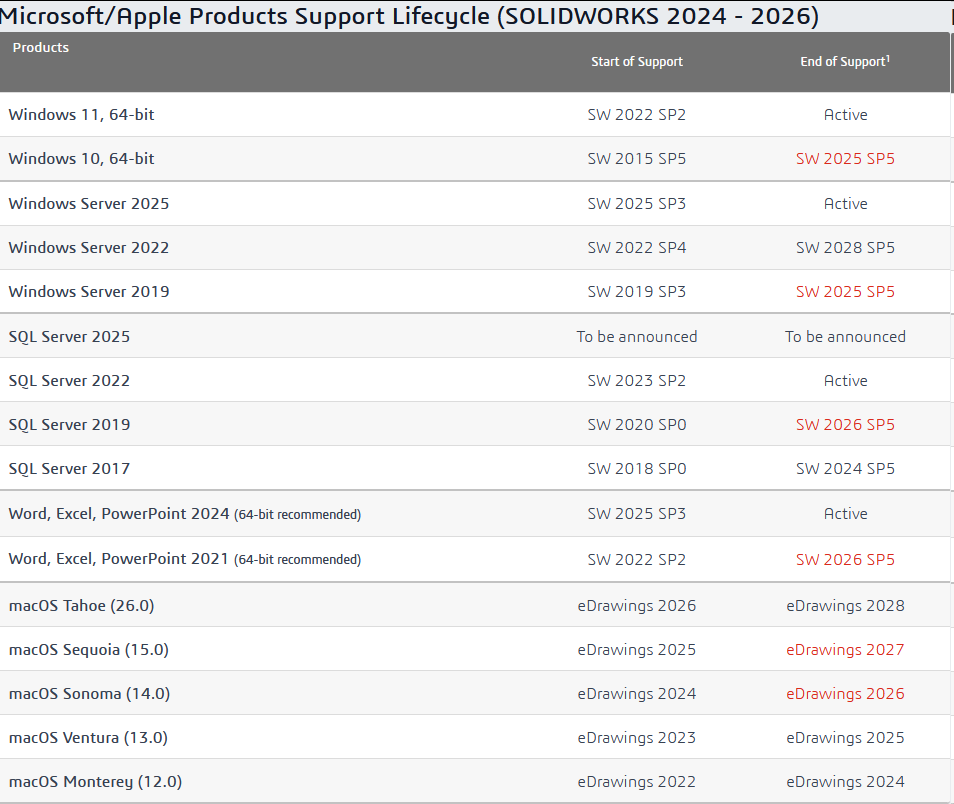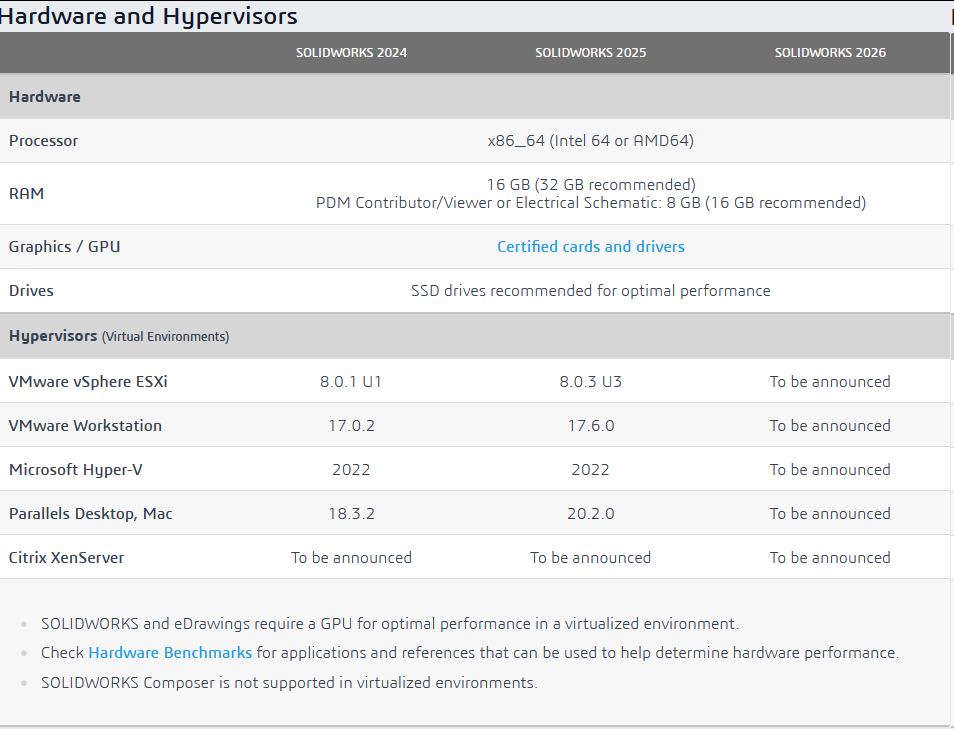 SOLIDWORKS 2024 、2025、2026系统要求