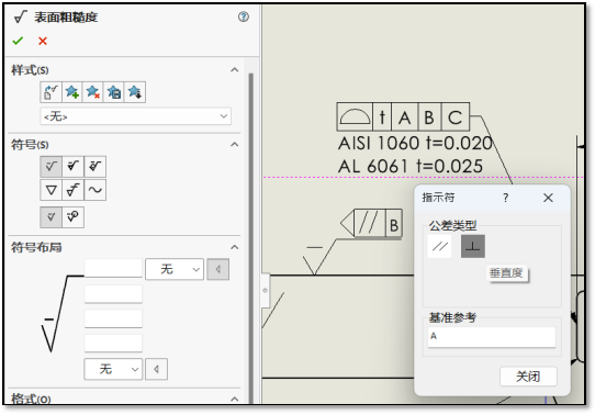 新的文档属性表面粗糙度选项,提供了符合ISO21920-1轮廓标准的表面处理符号,该标准提供了一种更新的表面粗糙度符号标注样式,并允许指定公差指示器。丰富了标准合规性和提升制造检测的沟通交流