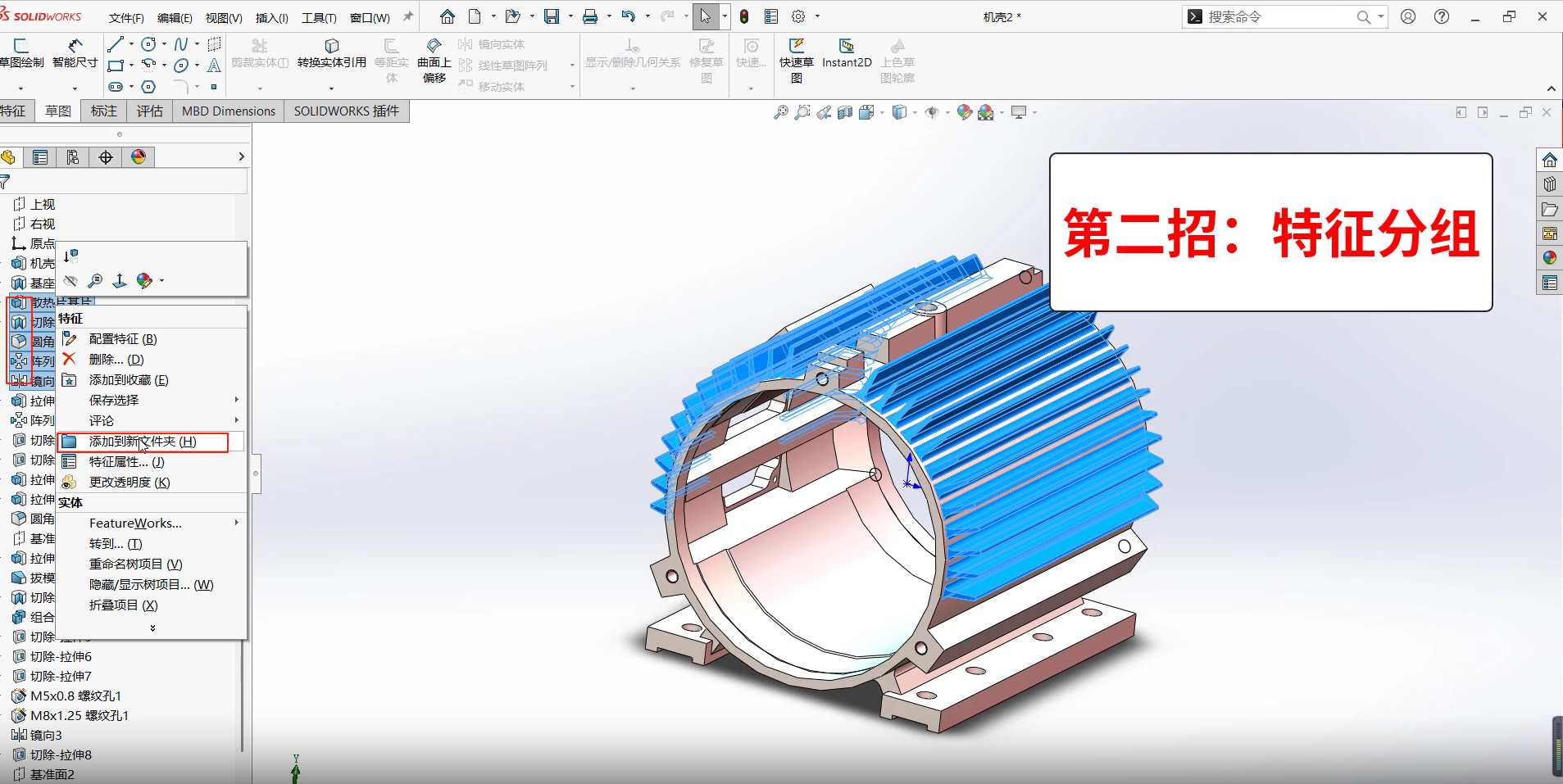 简化复杂模型树,快速折叠/展开特征组,提高阅读和编辑效率;