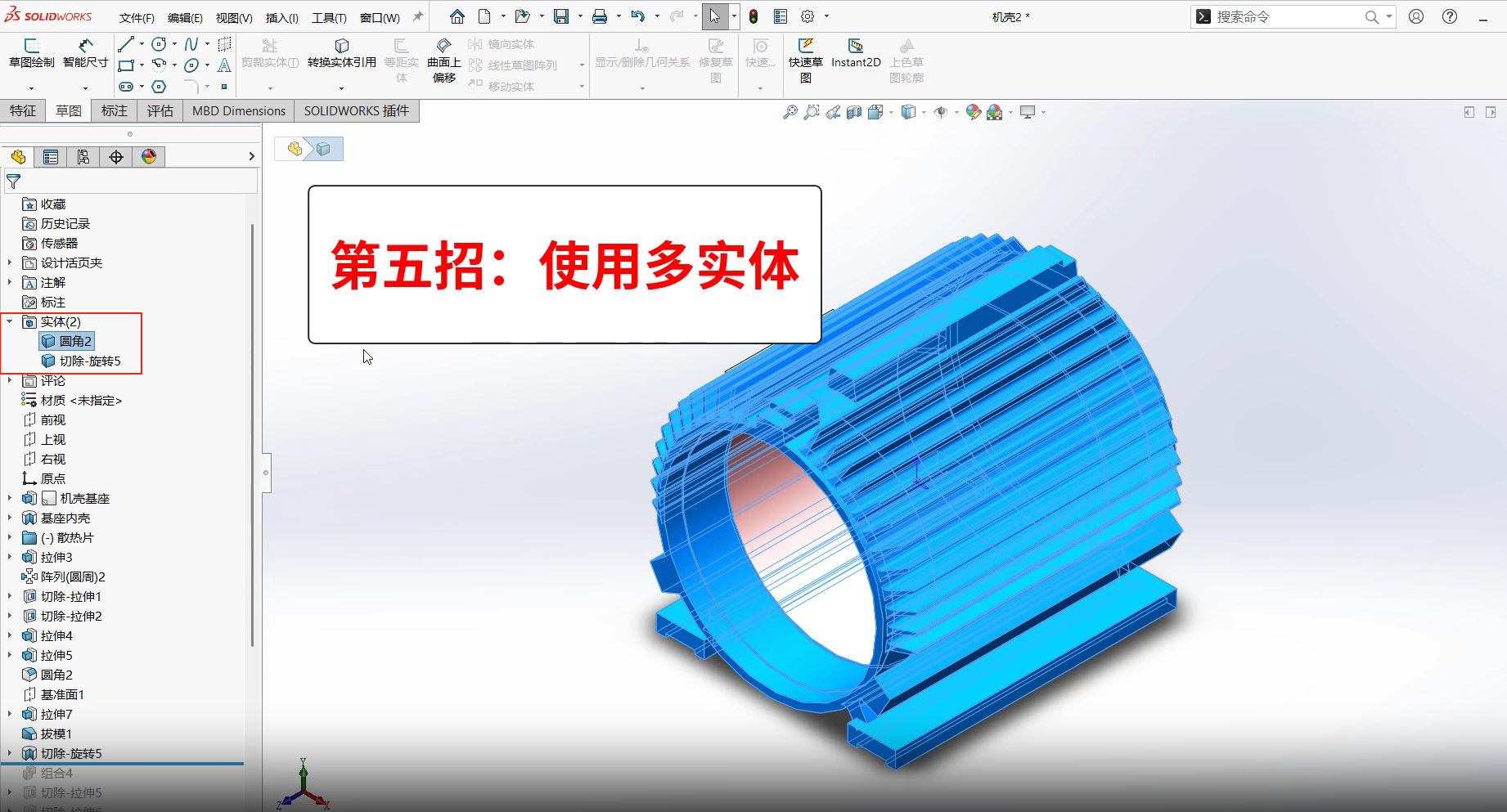 使用多实体布尔运算,避免装配体模型的管理负担;