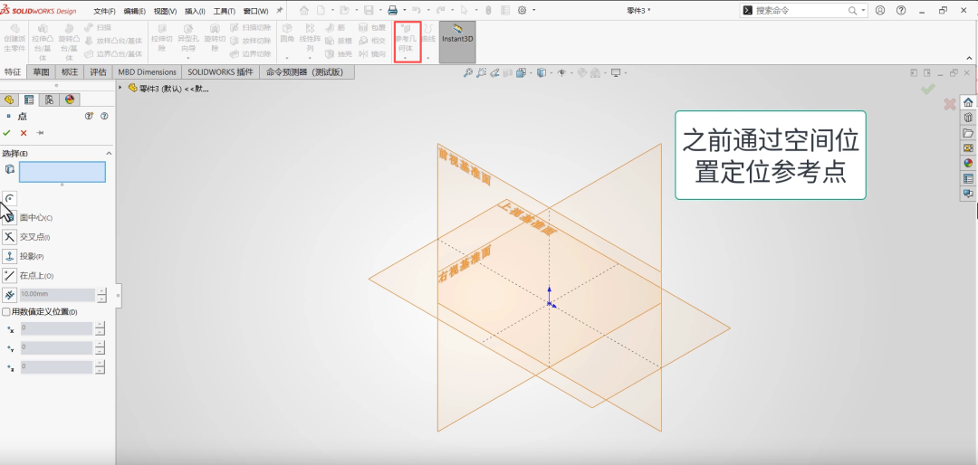 现在可以直接输入绝对坐标值创建参考点,无需依赖现有几何体。改变了以往必须依赖现有面、边线或草图来创建参考点的方式。