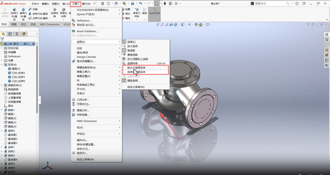 选择多实体零件的实体和特征:多实体零件包含多个互不连接的实体,清晰的实体与特征选择方法,便于针对性编辑。