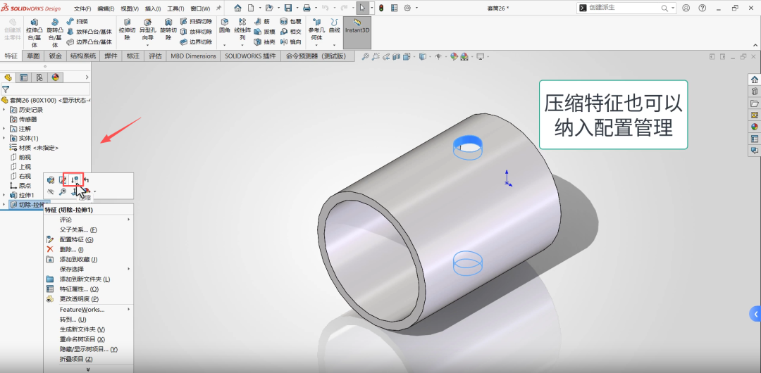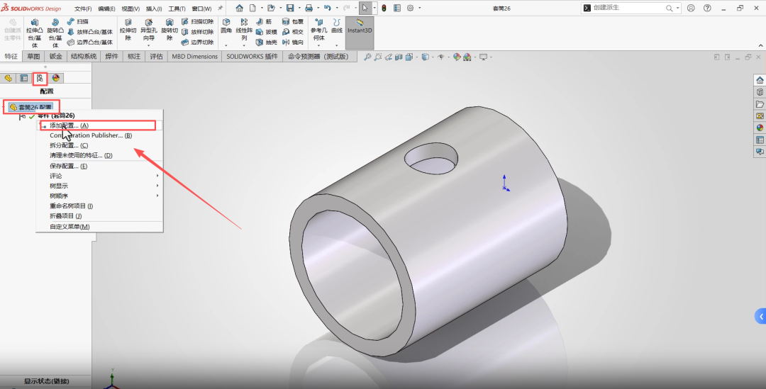配置功能允许在单个文件中创建和管理零件或装配体的多个设计变化,从而极大简化了系列产品、不同版本或状态的模型设计。